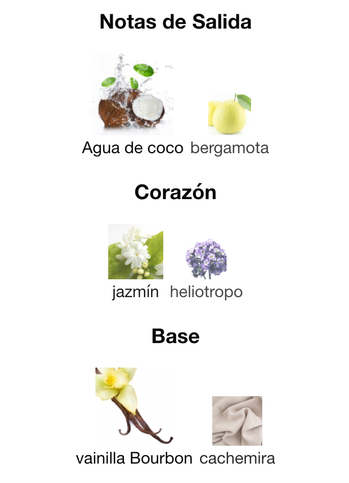Notas clave: Esencia de bergamota, jazmín grandiflorum, vainilla bourbon